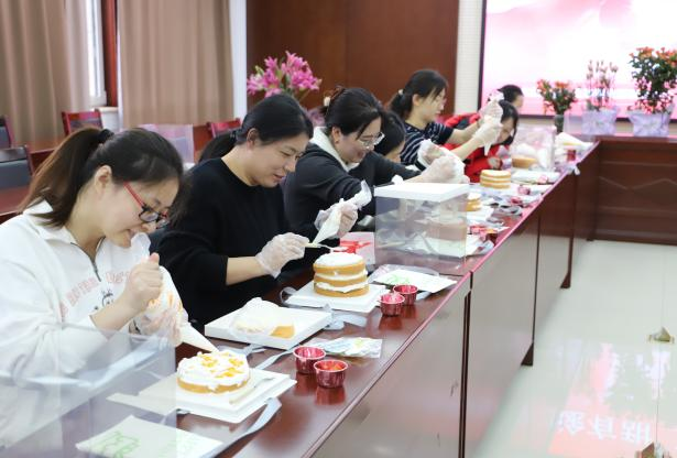 女职工欢聚一堂,以花为伴,共赴一场甜蜜的艺术之旅。活动现场,女工委主任王燕为大家详讲蛋糕制作步骤与小技巧,从裱花手法到装饰搭配,每一个环节都耐心示范。职工们认真聆听,随后纷纷动手实践,将创意与情感融入作品。有人以水果堆叠的形式,表达对工作生活硕果累累的的期待;有人用花点缀,诠释内心的温柔与坚韧。在欢声笑语中,一个个独具匠心的蛋糕逐渐成型,承载着每位女性对美好生活的独特理解。
